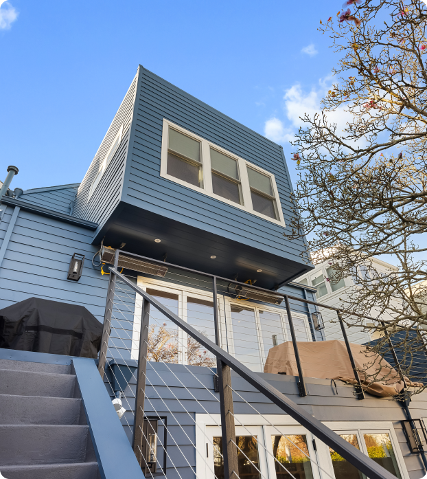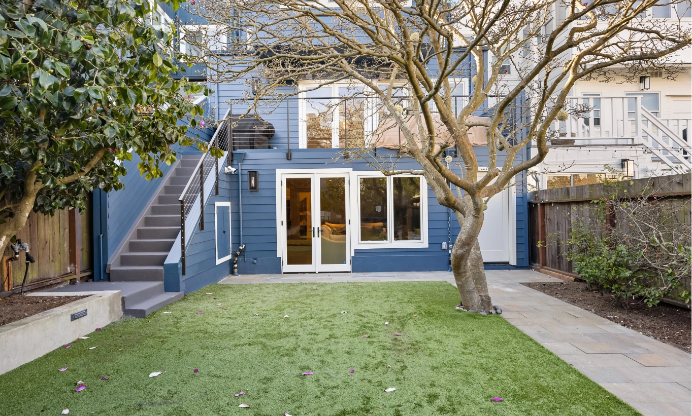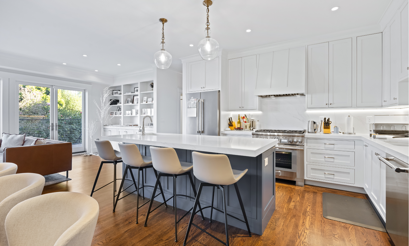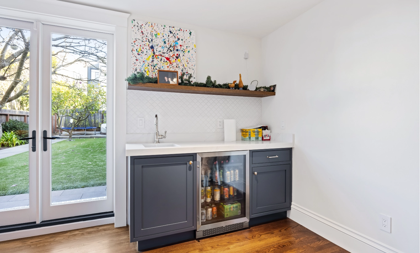 This full house remodel on 20th Ave by Mission Home Remodeling is a testament to modern elegance and thoughtful craftsmanship. The kitchen is a showpiece with crisp white shaker-style cabinetry, a bold navy island topped with gleaming quartz, and stylish pendant lights that add a touch of luxury. Stainless steel appliances and a seamless flow to the adjacent living area create a perfect balance of functionality and aesthetic appeal. Warm hardwood floors stretch throughout the home, tying each space together with natural charm.